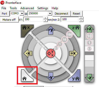 - Click the Home button, to home all of the axis.
